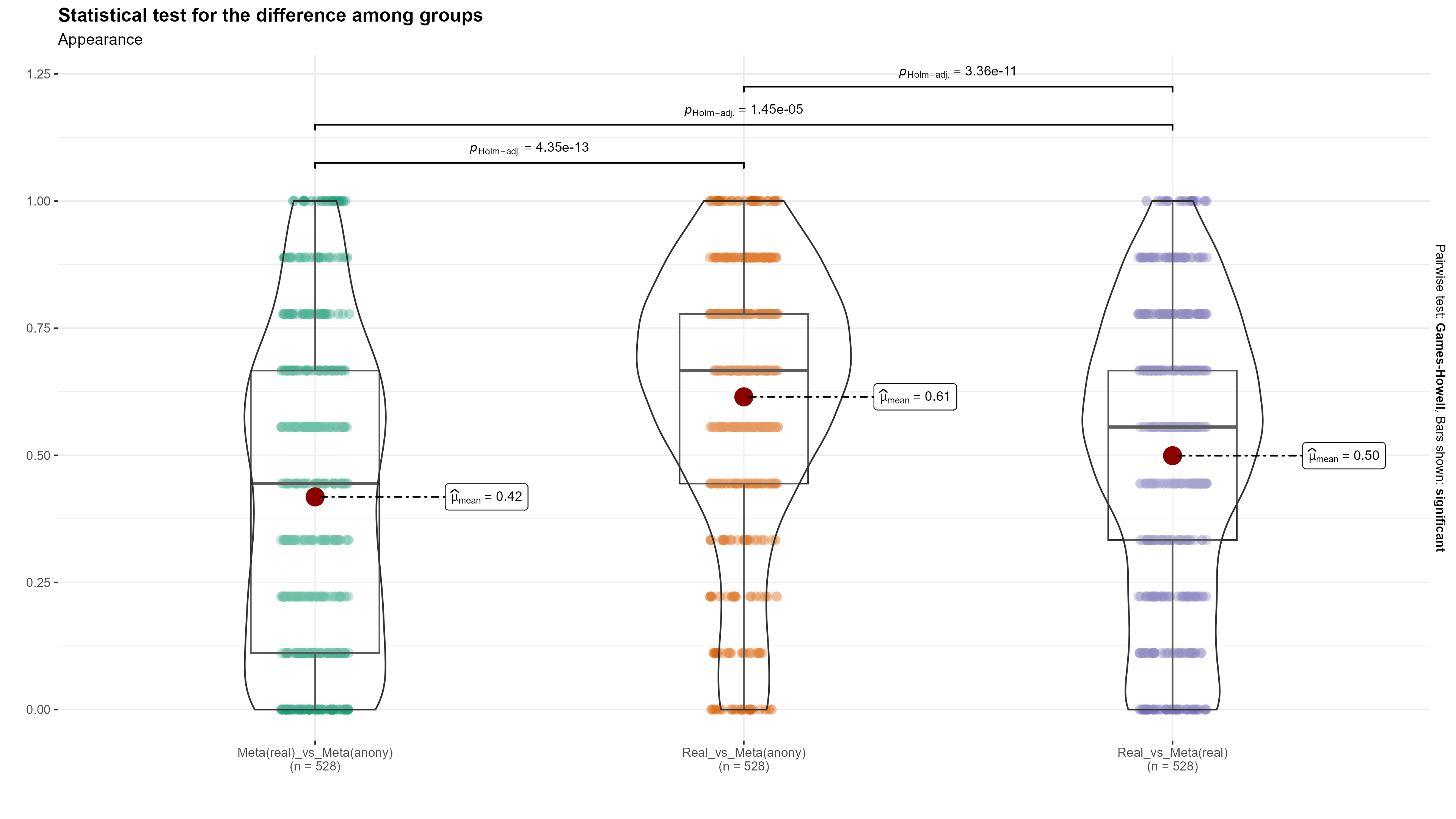 Appearance vs. Style → Intention to Use : No statistical sig. difference among groups