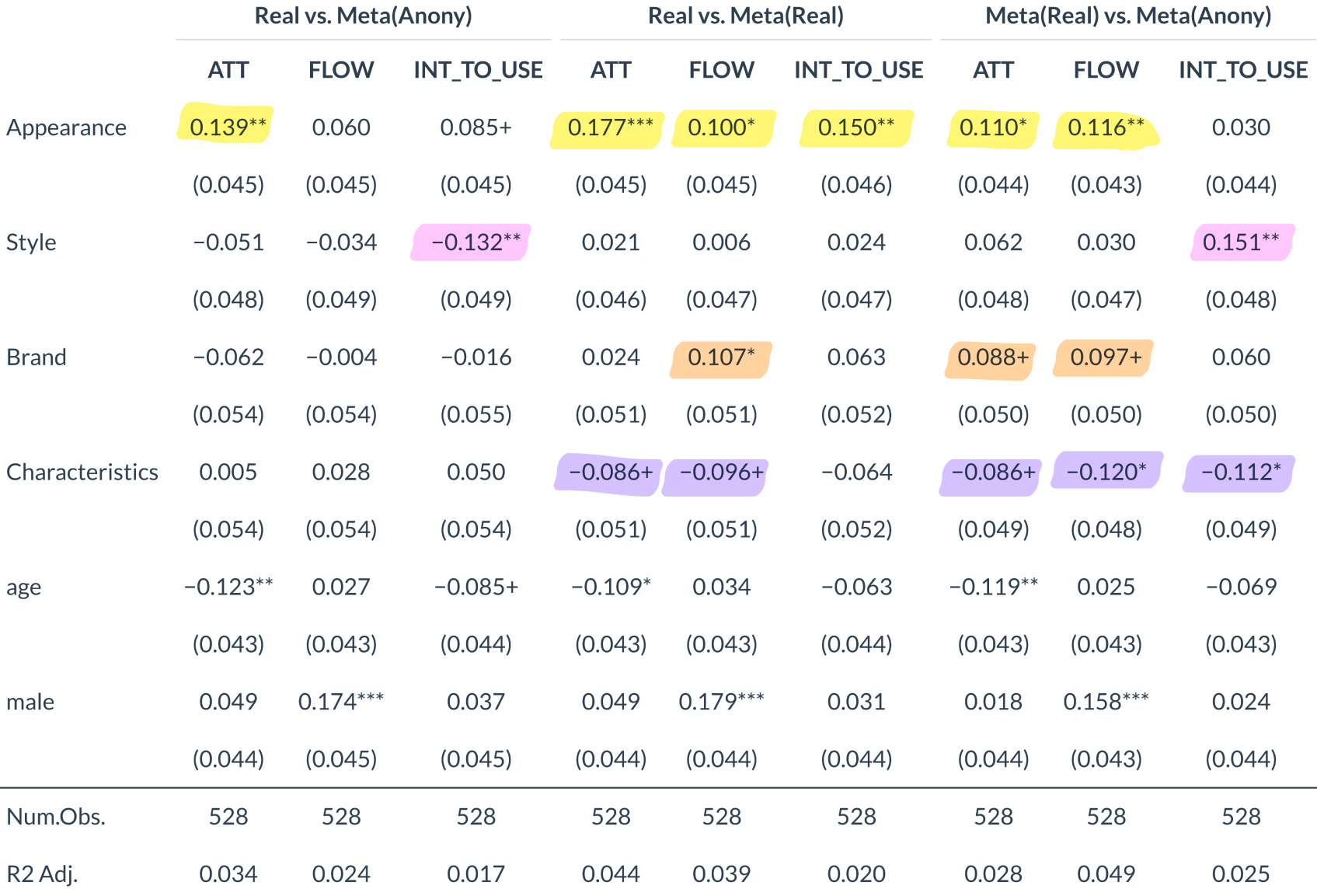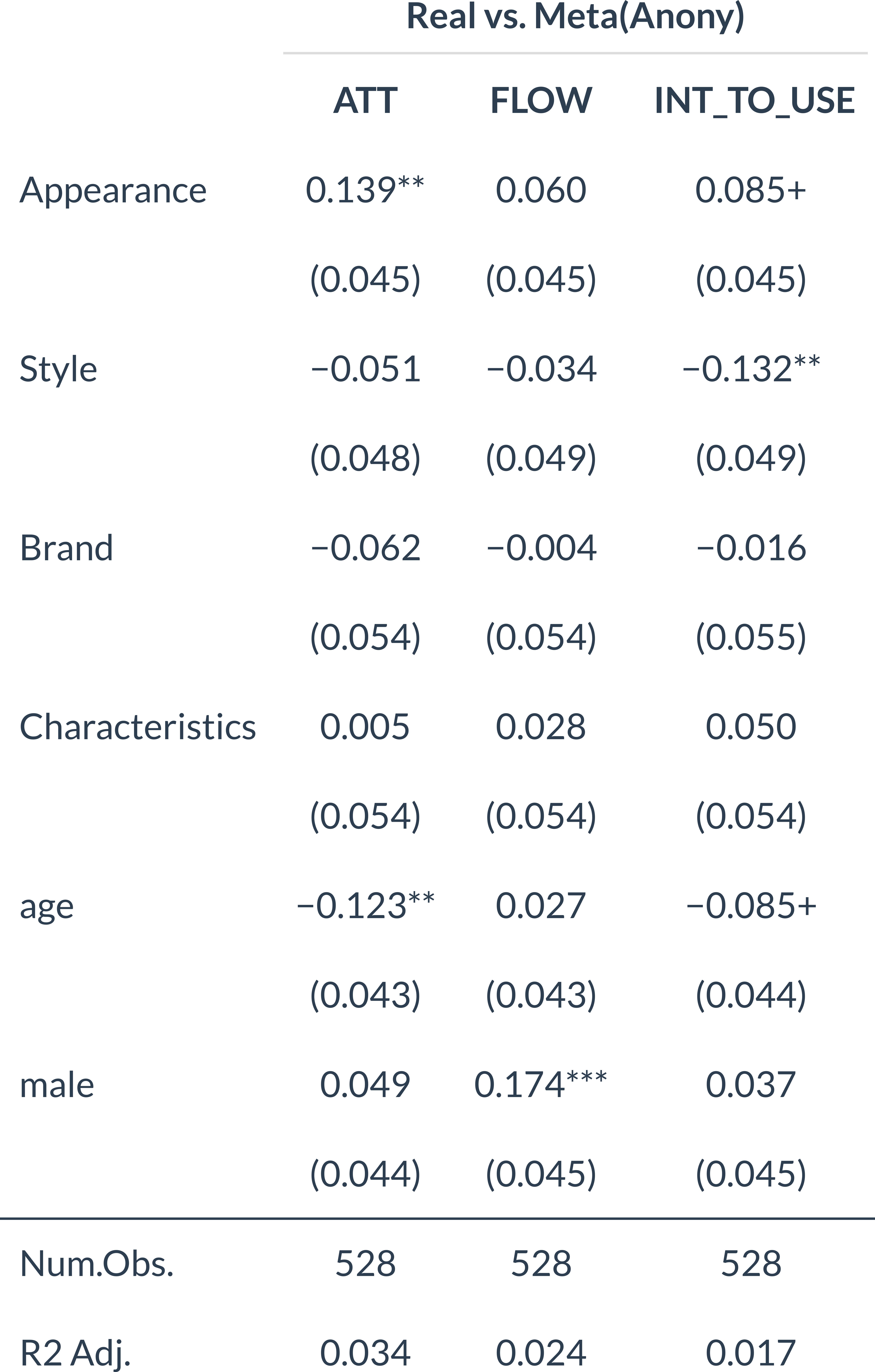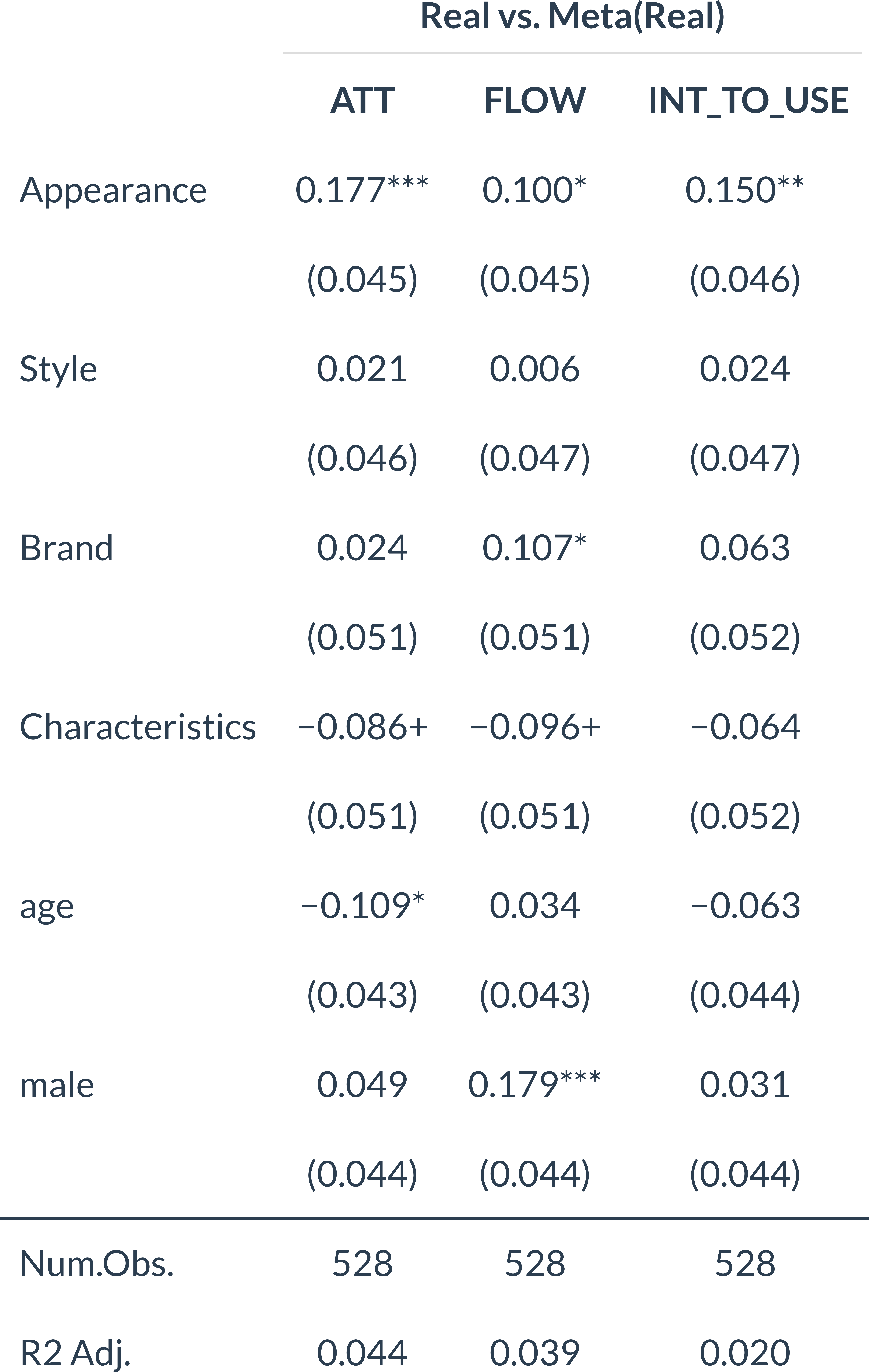 \[ Y_i = \beta_1 \Delta Appr_i + \beta_2 \Delta Style_i + \beta_3 \Delta Brand_i + \beta_4 \Delta Chars_i + \alpha + \epsilon_i \]